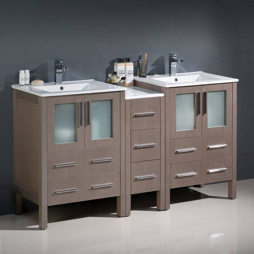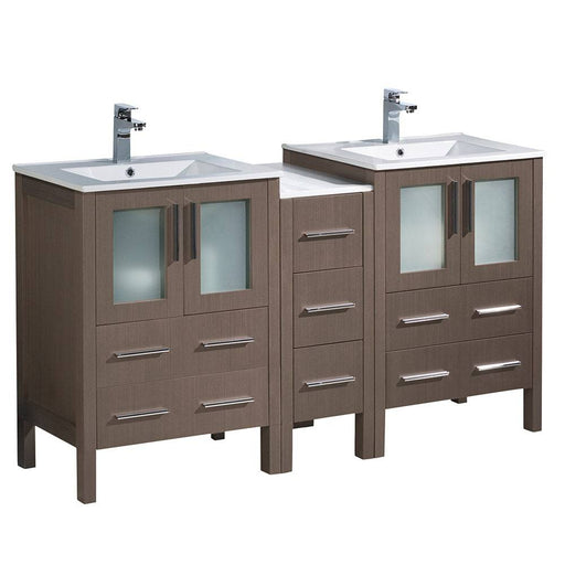 View full detailsFresca FCB62-241224GO-I Torino 60" Gray Oak Modern Double Sink Bathroom Cabinets with Integrated Sinks