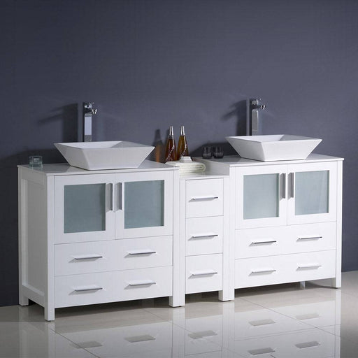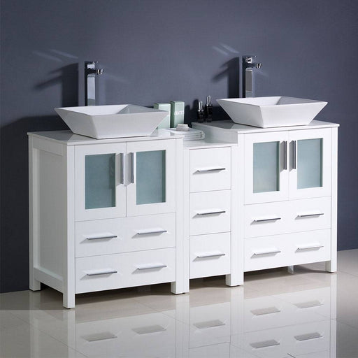 View full detailsFresca FCB62-301230WH-CWH-V Torino 72" White Modern Double Sink Bathroom Cabinets with Tops & Vessel Sinks