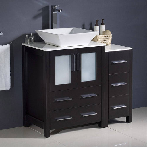 View full detailsFresca FCB62-2412ES-CWH-V Torino 36" Espresso Modern Bathroom Cabinets with Top & Vessel Sink