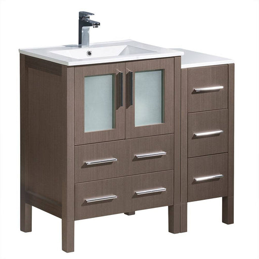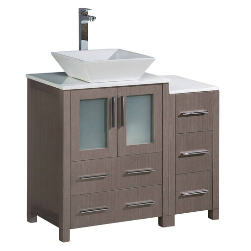 View full detailsFresca FCB62-2412GO-CWH-V Torino 36" Gray Oak Modern Bathroom Cabinets with Top & Vessel Sink