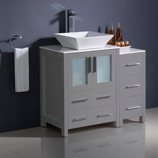 View full detailsFresca FCB62-2412GR-CWH-V Torino 36" Grey Modern Bathroom Cabinets with Top & Vessel Sink