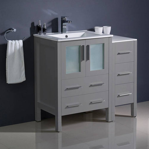 View full detailsFresca FCB62-2412GR-I Torino 36" Grey Modern Bathroom Cabinets with Integrated Sink