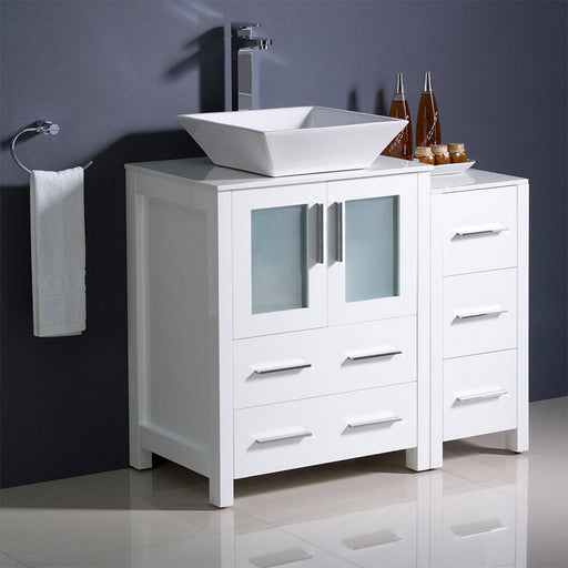 View full detailsFresca FCB62-2412WH-CWH-V Torino 36" White Modern Bathroom Cabinets with Top & Vessel Sink