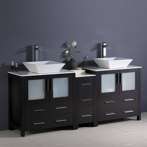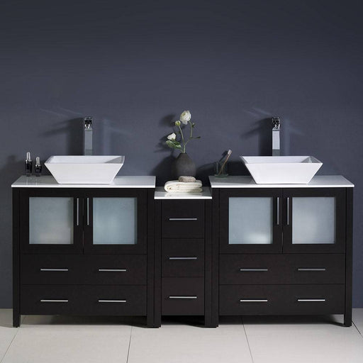 View full detailsFresca FCB62-301230ES-CWH-V Torino 72" Espresso Modern Double Sink Bathroom Cabinets with Tops & Vessel Sinks