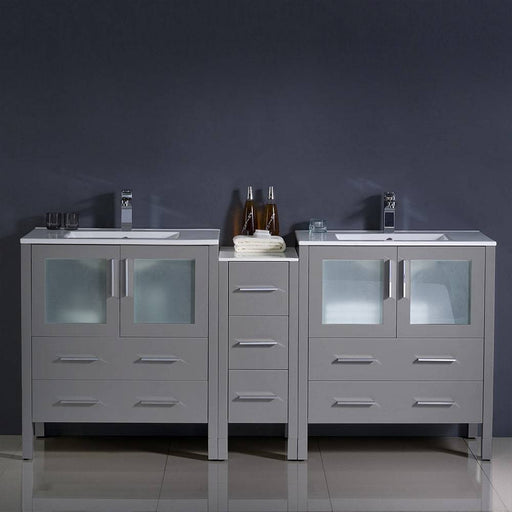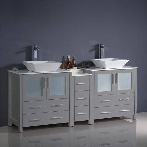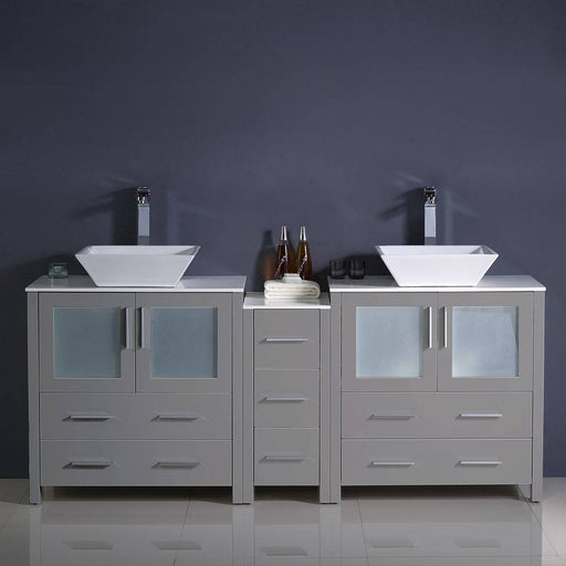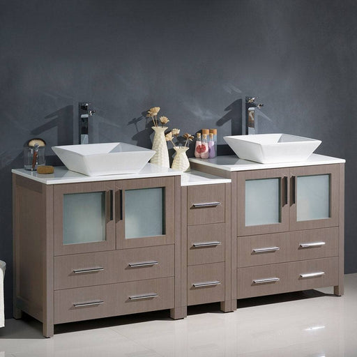 View full detailsFresca FCB62-301230GR-CWH-V Torino 72" Grey Modern Double Sink Bathroom Cabinets with Tops & Vessel Sinks