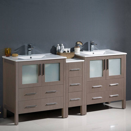 View full detailsFresca FCB62-301230GO-I Torino 72" Gray Oak Modern Double Sink Bathroom Cabinets with Integrated Sinks