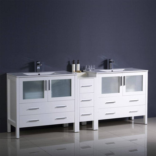 View full detailsFresca FCB62-301230WH-I Torino 72" White Modern Double Sink Bathroom Cabinets with Integrated Sinks