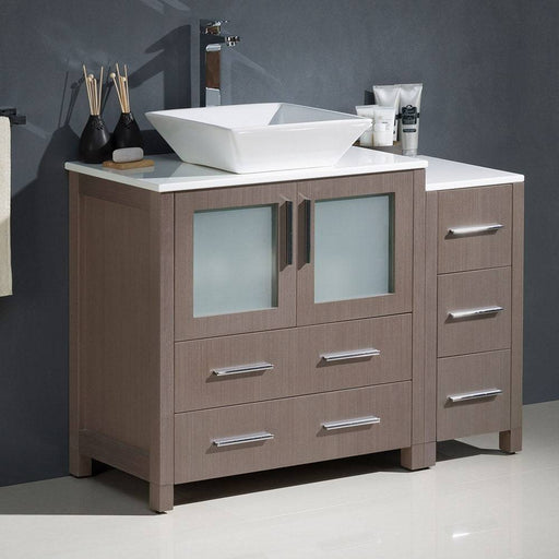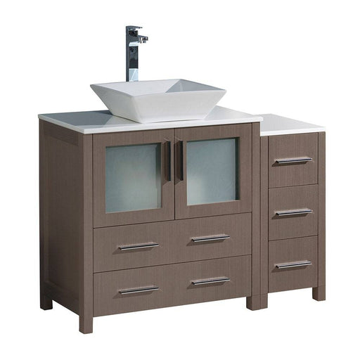View full detailsFresca FCB62-3012GO-CWH-V Torino 42" Gray Oak Modern Bathroom Cabinets with Top & Vessel Sink
