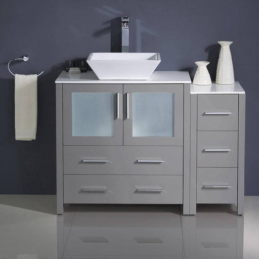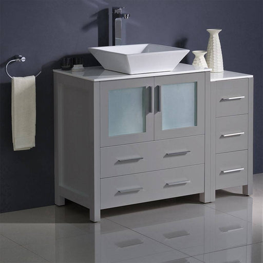 View full detailsFresca FCB62-3012GR-CWH-V Torino 42" Grey Modern Bathroom Cabinets with Top & Vessel Sink