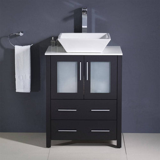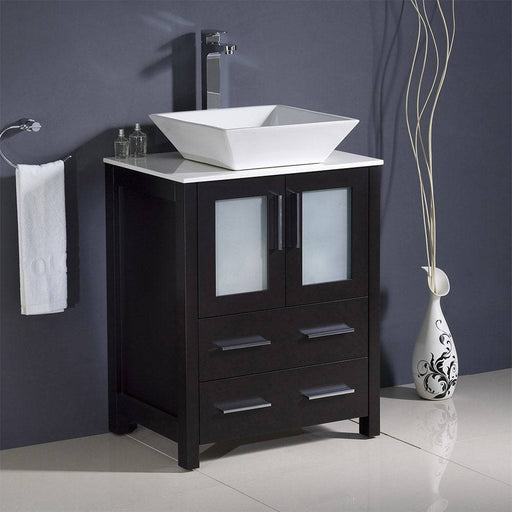View full detailsFresca FCB6224ES-CWH-V Torino 24" Espresso Modern Bathroom Cabinet with Top & Vessel Sink