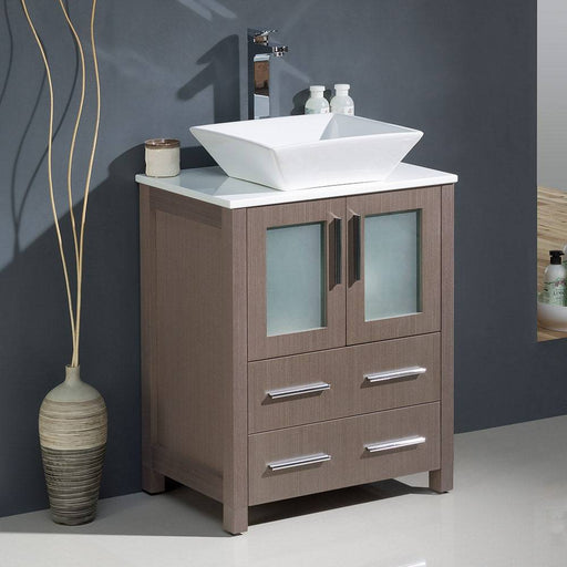 View full detailsFresca FCB6224GO-CWH-V Torino 24" Gray Oak Modern Bathroom Cabinet with Top & Vessel Sink