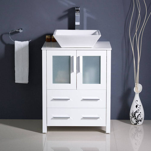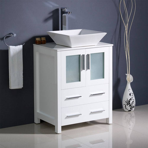 View full detailsFresca FCB6224WH-CWH-V Torino 24" White Modern Bathroom Cabinet with Top & Vessel Sink