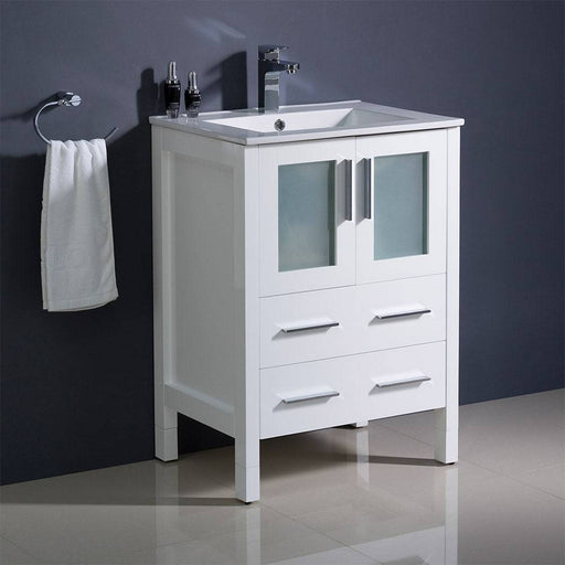 View full detailsFresca FCB6224WH-I Torino 24" White Modern Bathroom Cabinet with Top & Integrated Sink