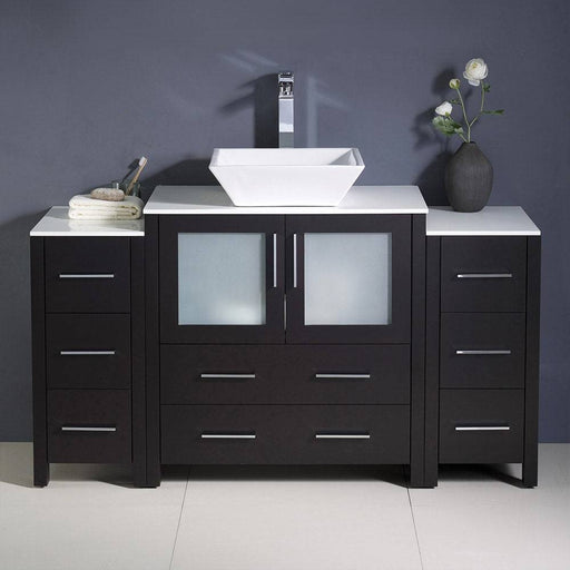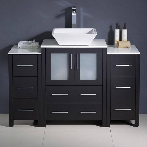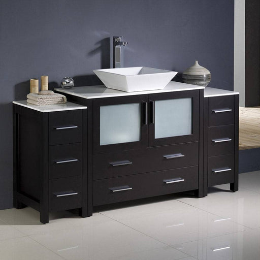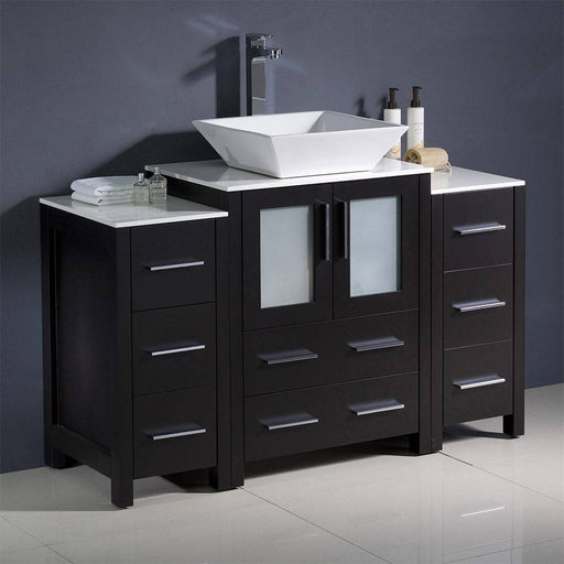 View full detailsFresca FCB62-123012ES-CWH-V Torino 54" Espresso Modern Bathroom Cabinets with Top & Vessel Sink