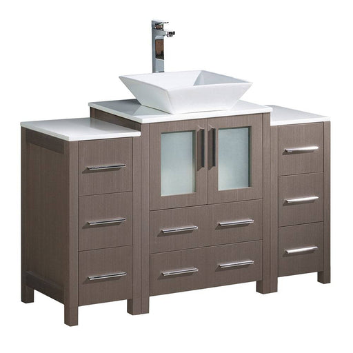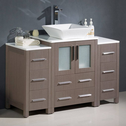 View full detailsFresca FCB62-123012GO-CWH-V Torino 54" Gray Oak Modern Bathroom Cabinets with Top & Vessel Sink