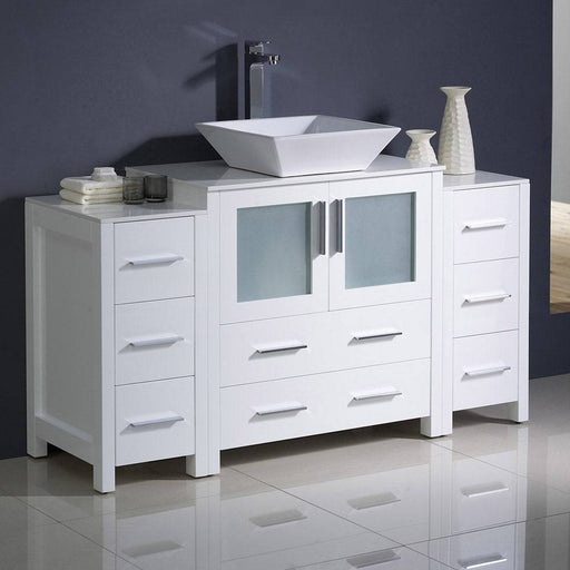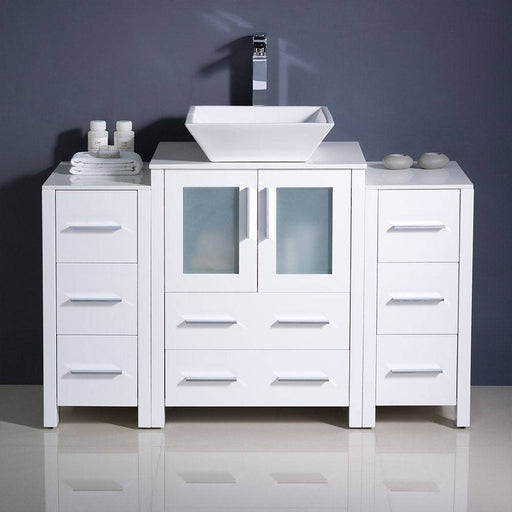 View full detailsFresca FCB62-123012WH-CWH-V Torino 54" White Modern Bathroom Cabinets with Top & Vessel Sink