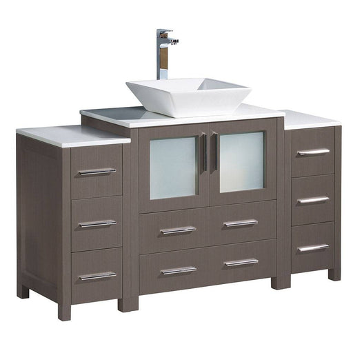Fresca FCB62-123012GR-CWH-V Torino 54" Grey Modern Bathroom Cabinets with Top & Vessel Sink