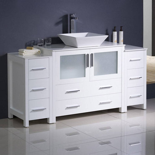 View full detailsFresca FCB62-123612WH-CWH-V Torino 60" White Modern Bathroom Cabinets with Top & Vessel Sink