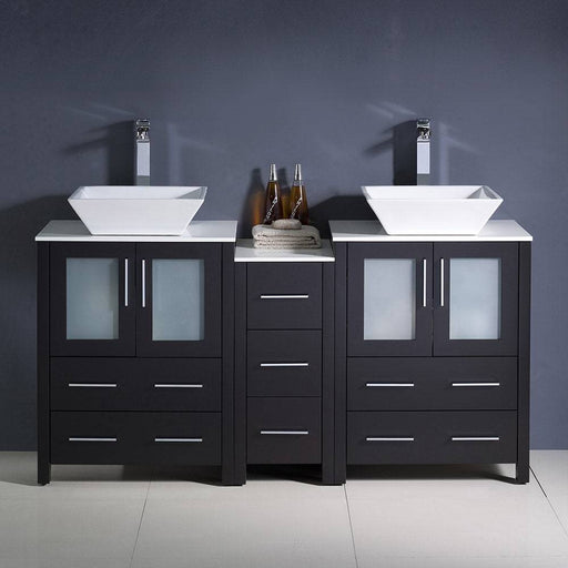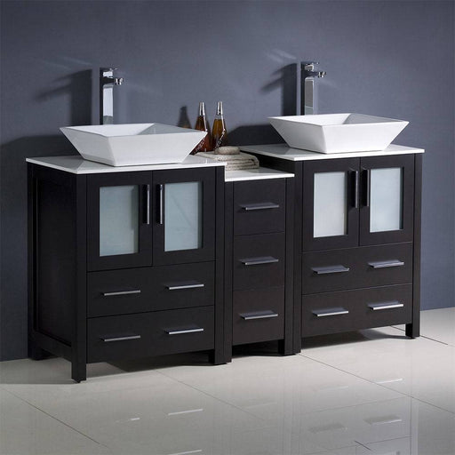 View full detailsFresca FCB62-241224ES-CWH-V Torino 60" Espresso Modern Double Sink Bathroom Cabinets with Tops & Vessel Sinks