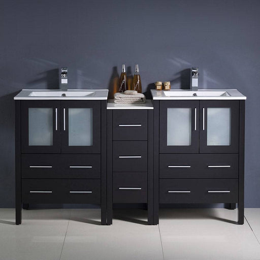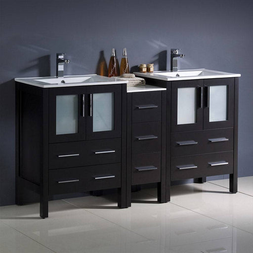Fresca FCB62-241224ES-I Torino 60" Espresso Modern Double Sink Bathroom Cabinets with Integrated Sinks