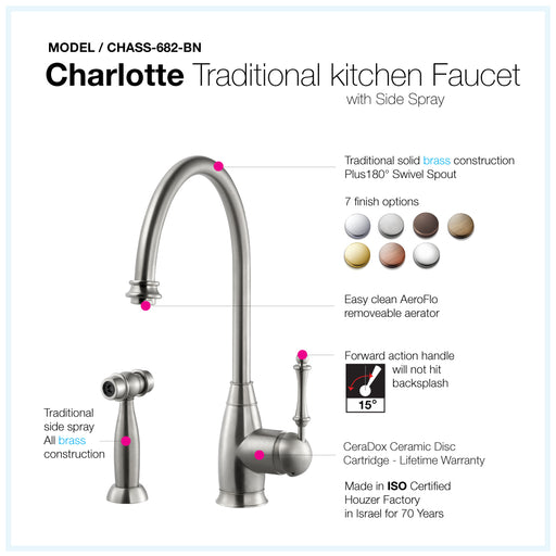 HouzerHouzer CHASS-682-BN Charlotte traditional kitchen faucet with side spray in brushed nickel adds classic style to your home. The distinct look and e...