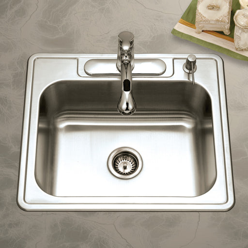 Houzer 2522-8BS4-C Glowtone 25" Stainless Steel Drop-in Topmount 4-Hole Single Bowl 8" Deep Kitchen Sink with Strainer