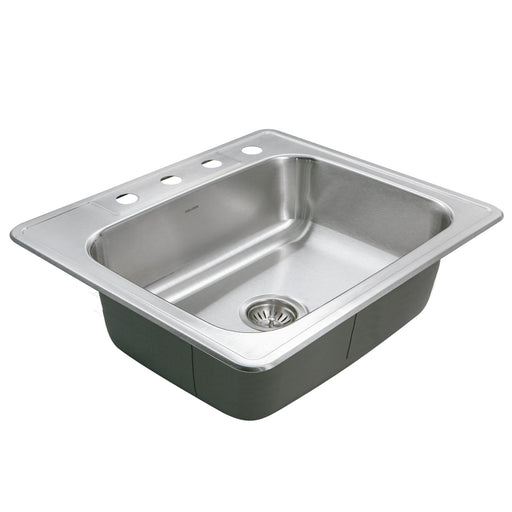 Houzer 2522-9BS4-C Glowtone 25" Stainless Steel Drop-in Topmount 4-Hole Single Bowl 9" Deep Kitchen Sink with Strainer