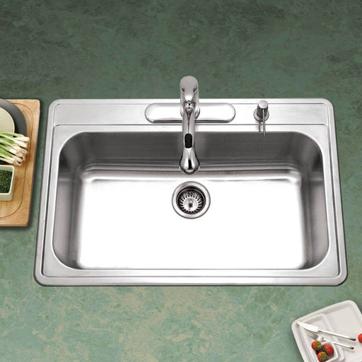 Houzer PGS-3122-4-1 Premier 33" Stainless Steel Drop-in 4-Hole Single Bowl Kitchen Sink with Strainer