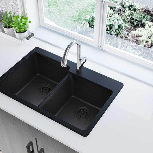 View full detailsElkay ELGH3322RBK0 Quartz Classic 33 x 22 x 10" 2-Bowl Top Mount Kitchen Sink, Aqua Divide, Black