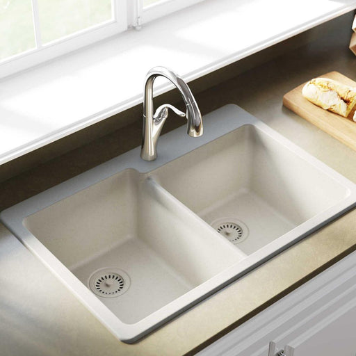View full detailsElkay ELG250RBQ0 Quartz Classic 33" x 22" x 9-1/2", Offset 2-Bowl Top Mount Kitchen Sink, Bisque