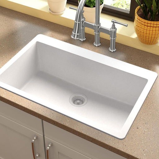 Elkay ELGS3322RWH0 Quartz Classic 33" x 22" x 9-1/2", Single Bowl Top Mount Kitchen Sink, White