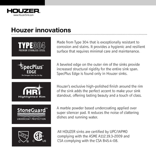 HouzerHouzer ENG-3320 Epicure Series apron front kitchen sink is made of premium grade T-304 stainless steel for optimum rust and corrosion resistance. T...