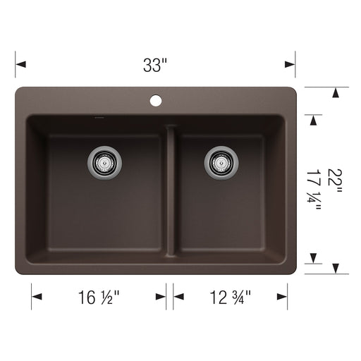 View full detailsBlanco 443215 Liven SILGRANIT 33" 60/40 Double Bowl Dual Mount Kitchen Sink in Cafe