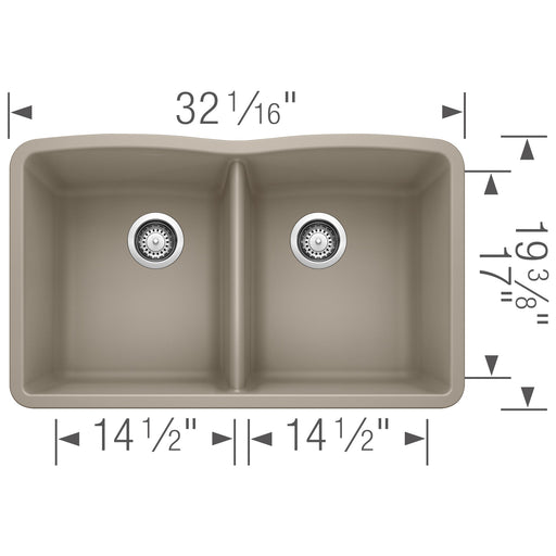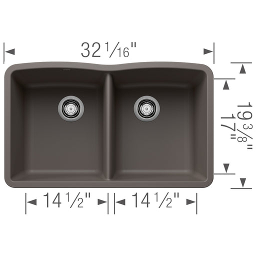 Blanco 440182 Diamond SILGRANIT 32" 50/50 Double Bowl Undermount Kitchen Sink - Cafe