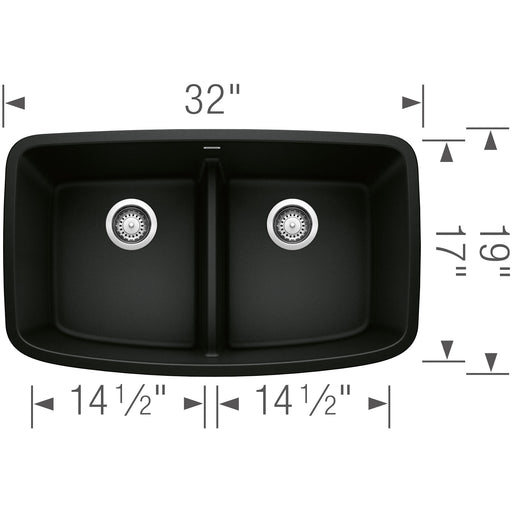 View full detailsBlanco 442940 Valea SILGRANIT 32" 50/50 Double Bowl Undermount Kitchen Sink in Coal Black