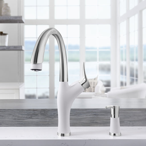 View full detailsBlanco 442036 Artona Pull-Down Dual-Spray Kitchen Faucet - PVD Steel/White