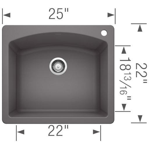 Blanco 440210 Diamond SILGRANIT 25" Single Bowl Dual Mount Kitchen Sink - Anthracite