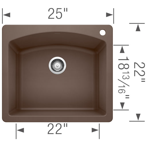 View full detailsBlanco 440208 Diamond SILGRANIT 25" Single Bowl Dual Mount Kitchen Sink - Cafe