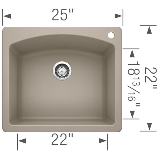 View full detailsBlanco 441280 Diamond SILGRANIT 25" Single Bowl Dual Mount Kitchen Sink - Truffle
