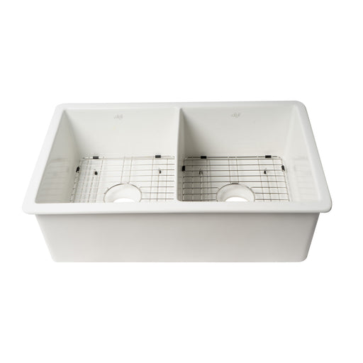 View full detailsALFI Brand ABF3219DUD-W White 32" x 19" Double Bowl Fireclay Kitchen Sink with Grid