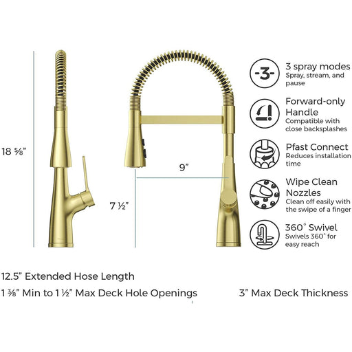 View full detailsPfister LG529-NECBG Neera Pull-Down Culinary Kitchen Faucet in Brushed Gold