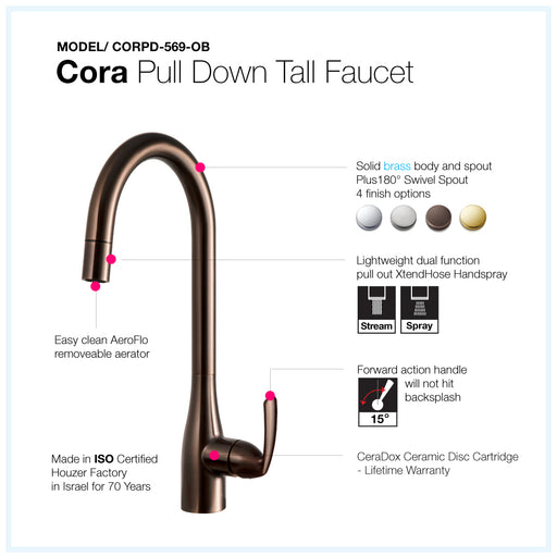 HouzerHouzer CORPD-569-OB Cora pull-down kitchen faucet in oil-rubbed bronze adds elegance and grace to the heart of your home. The Cora features a light...