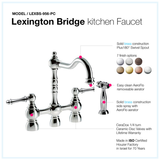 HouzerHouzer LEXBS-956-PC Lexington traditional bridge kitchen faucet with side spray in polished chrome adds classic style to your home. The distinct lo...