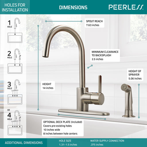View full detailsPeerless P199152LF-SS Precept Single Handle Kitchen Faucet with Side Spray in Stainless Finish