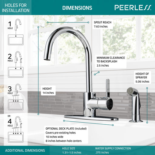 PeerlessPeerless P199152LF Precept Kitchen Faucet Features Fits 1, 2, 3, or 4-hole 8" installations Optional deck plate neatly covers any sink holes not i...