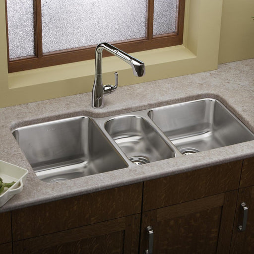 View full detailsElkay ELUH4020 Lustertone Stainless Steel 40" x 20-1/2" x 9-7/8", Triple Bowl Undermount Kitchen Sink