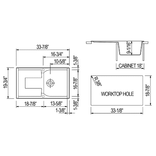 View full detailsALFI Brand AB1620DI-T Titanium 34" Granite Comp Kitchen Sink with Drainboard