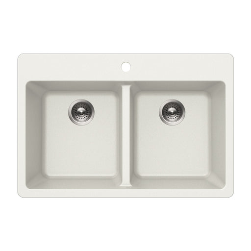 View full detailsHouzer M-300 CLOUD Quartztone 33" Cloud Granite Composite Drop-in Topmount 50/50 Double Bowl Kitchen Sink