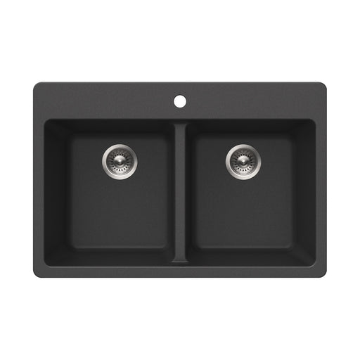 View full detailsHouzer M-300 MIDNITE Quartztone 33" Midnite Granite Composite Drop-in Topmount 50/50 Double Bowl Kitchen Sink
