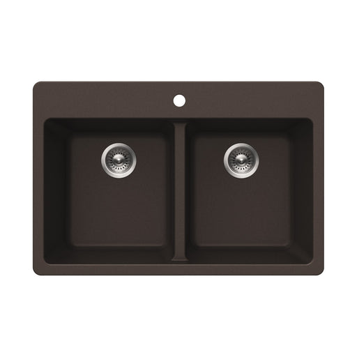 View full detailsHouzer M-300 MOCHA Quartztone 33" Mocha Granite Composite Drop-in Topmount 50/50 Double Bowl Kitchen Sink
